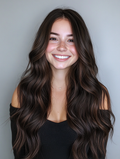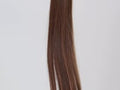Chocolate Sedoso es un castaño medio suave y neutro con una intensidad aterciopelada y un toque de calidez dorada. Este tono imita el brillo natural del cabello castaño sin tratar: dimensional, cremoso y favorecedor sin esfuerzo. Tiene un toque de chocolate con leche y sutiles matices moca para un look intenso pero sin resultar abrumador.